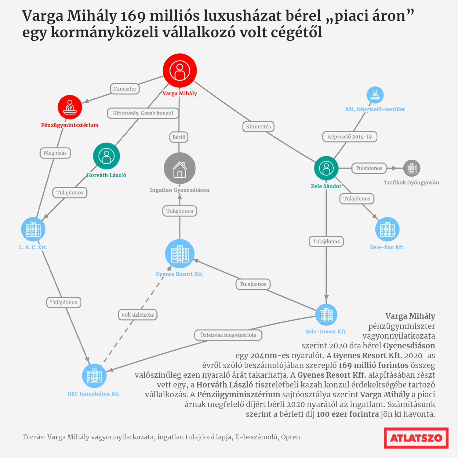 According to his asset declaration, Finance Minister Mihály Varga is renting a 204-square-metre holiday home in Gyenesdiás since 2020. Átlátszó has found out where the property is located, and that it is linked to an entrepreneur close to the government. From the annual accounts of the company which owns it, we deduced that the value of the property on Lake Balaton was estimated at HUF 169 million. After we published that Varga could rent a luxury villa at a bargain price, the Minister responded to our calculations in a Facebook post, in which he says his rent is in line with the market price. Real estate experts and property advertisements tell otherwise: the market price would be at least the triple of what the Minister is paying.