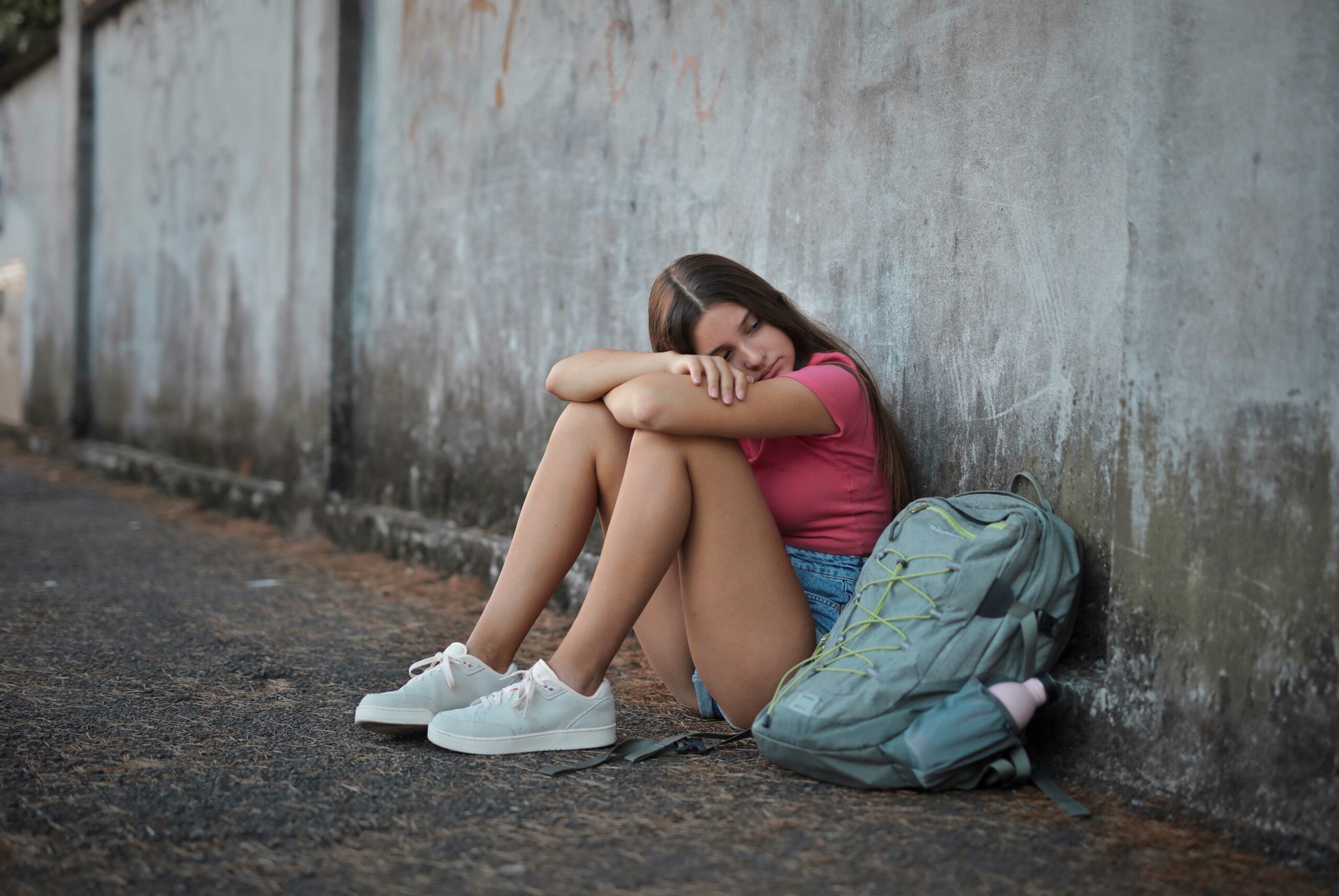 Sad Teenager Leaning Against A Wall resized