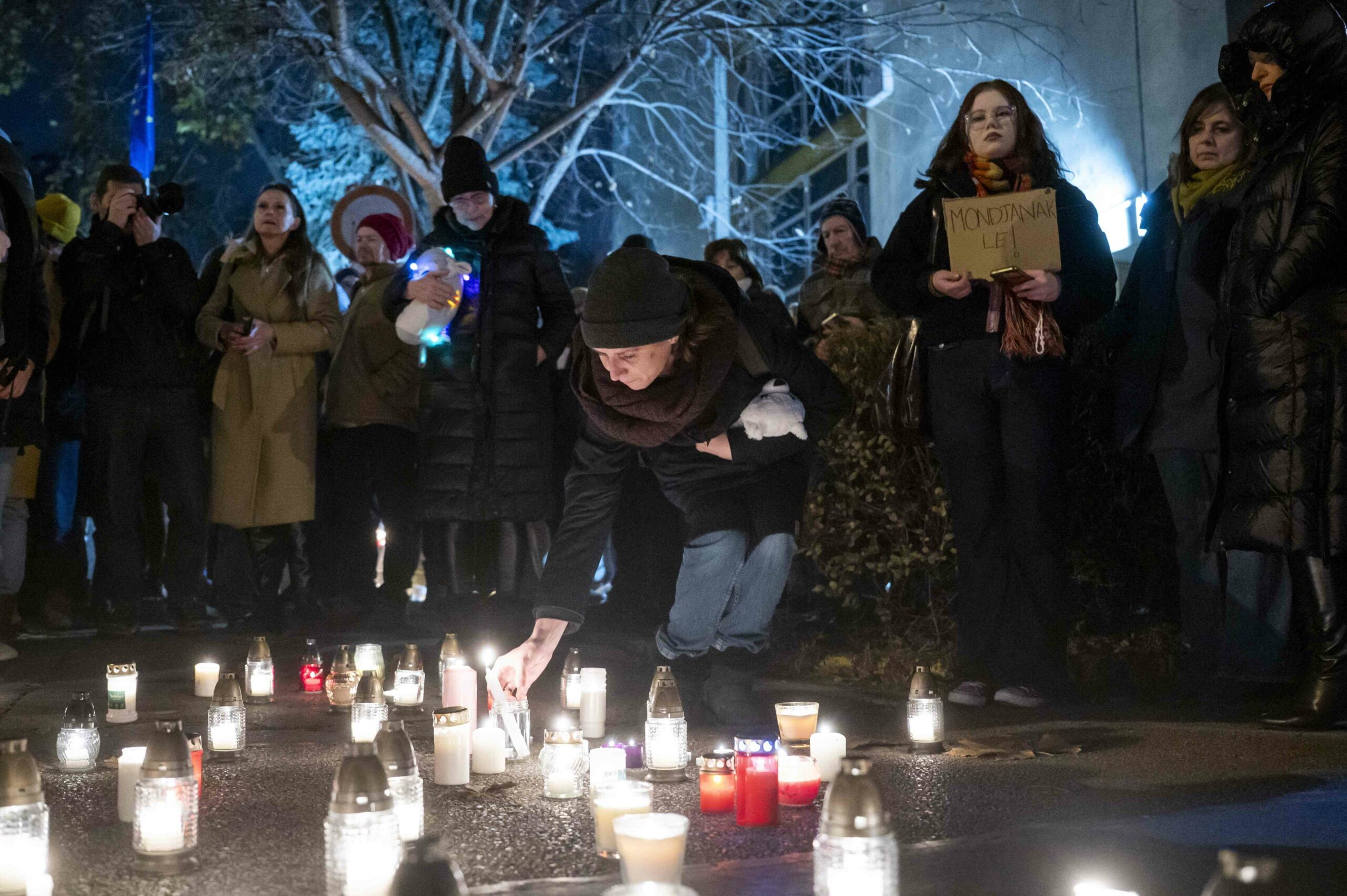 Candles lit during a “silent protest’ held on December 14, 2025 against alleged conditions and abuse at the Szőlő utca Reformatory of Budapest. MTI/Balogh Zoltán